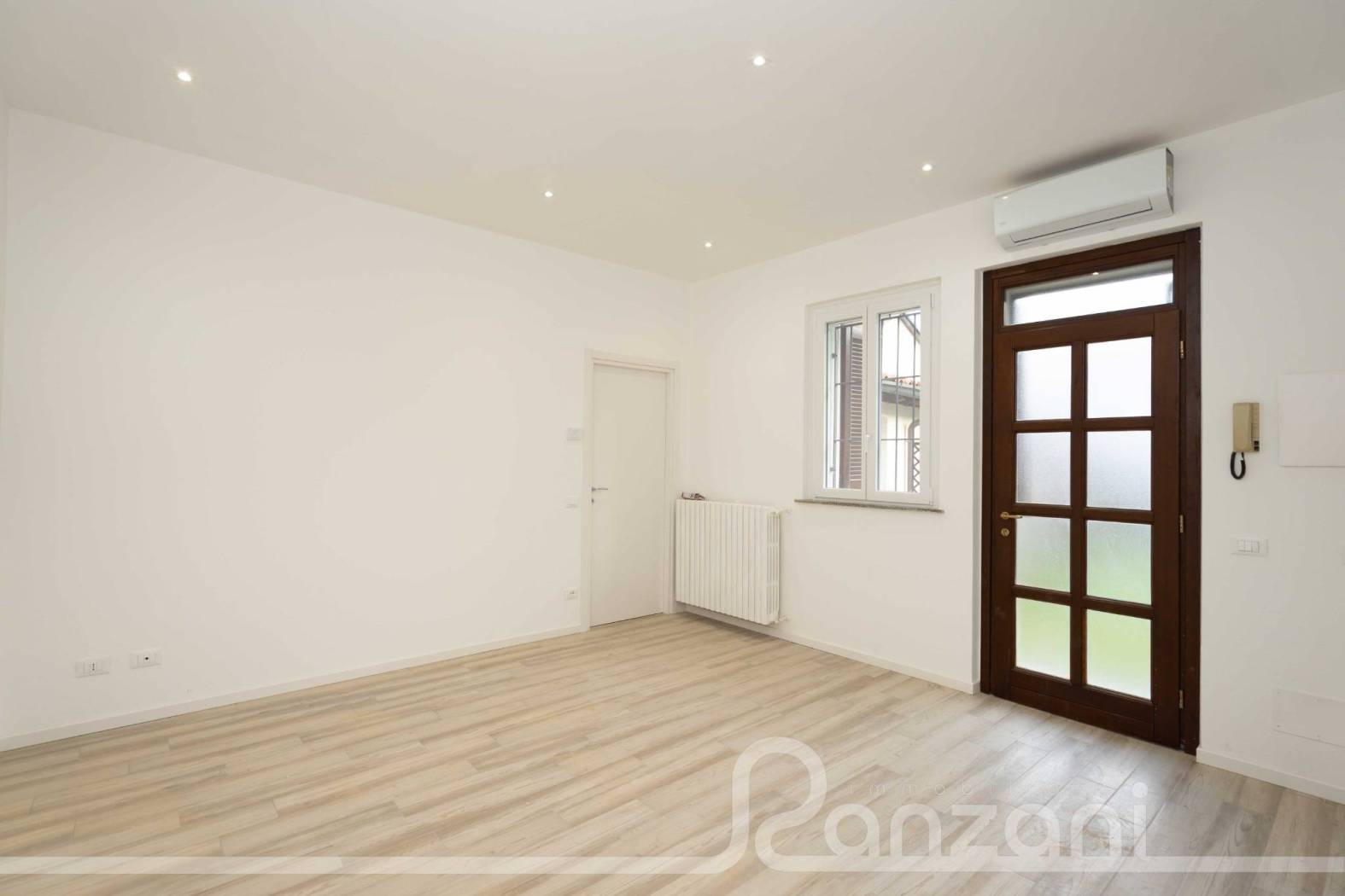 Pavimentazione in gres porcellanato, finestre nuove performanti in PVC bianco, impianto di climatizzazione nuovo caldo/freddo e caldaia autonoma a metano, cucina reversibile (attacchi sia in soggiorno, sia in cameretta per utilizzo come trilocale o come grande bilocale), bagno finestrato, ventilazione meccanica controllata. Faretti led integrati, impianto elettrico revisionato, bagno rifatto a nuovo. Piano unico, il tetto è di proprieta, con la possibilità quindi di installazione di pannelli solari (falda a sud). Box di proprietà a 20milaEu. aggiuntive, comodamente davanti all'ingresso, il fronte del box per accordi di corte può essere utilizzato per posteggiare l'auto.