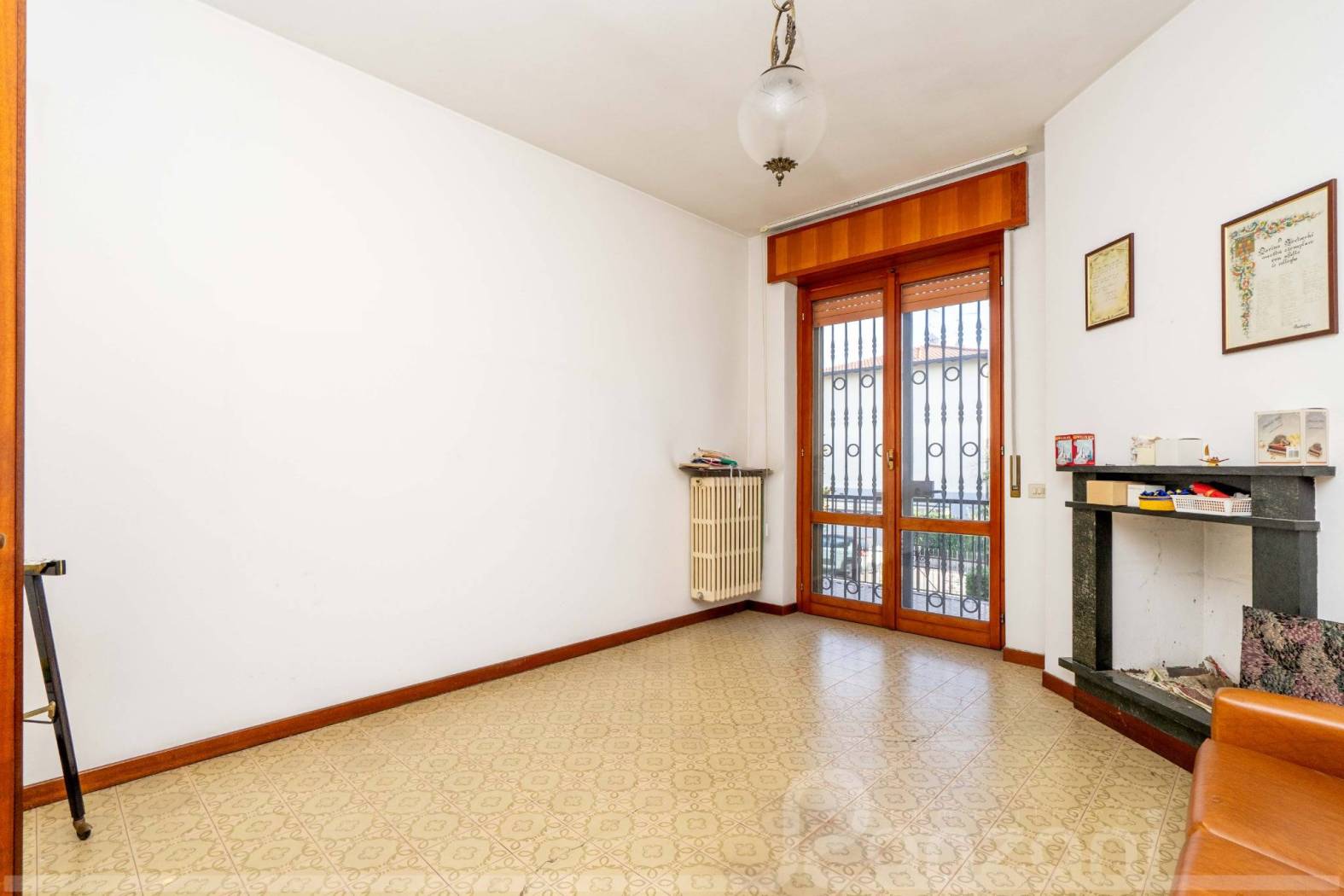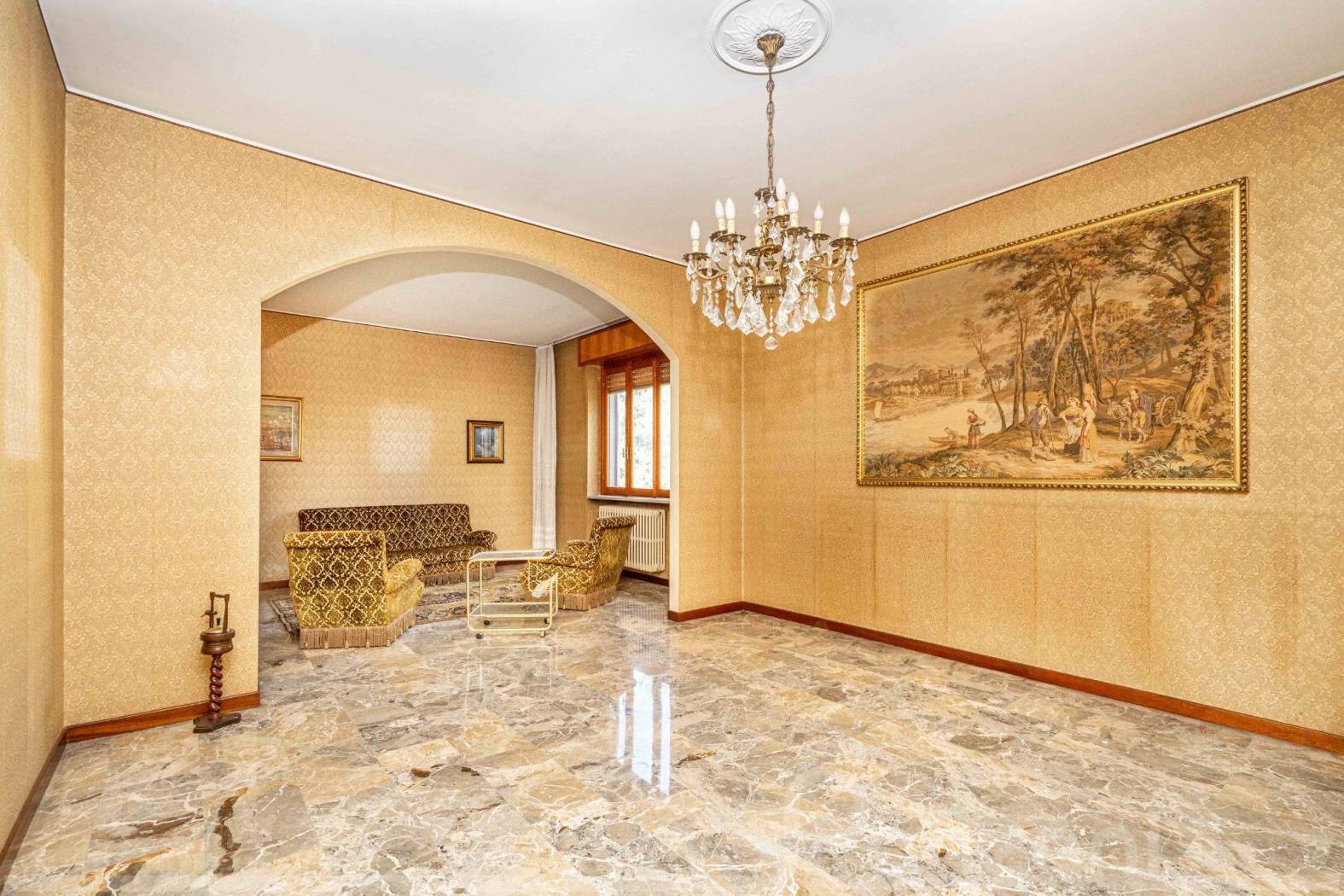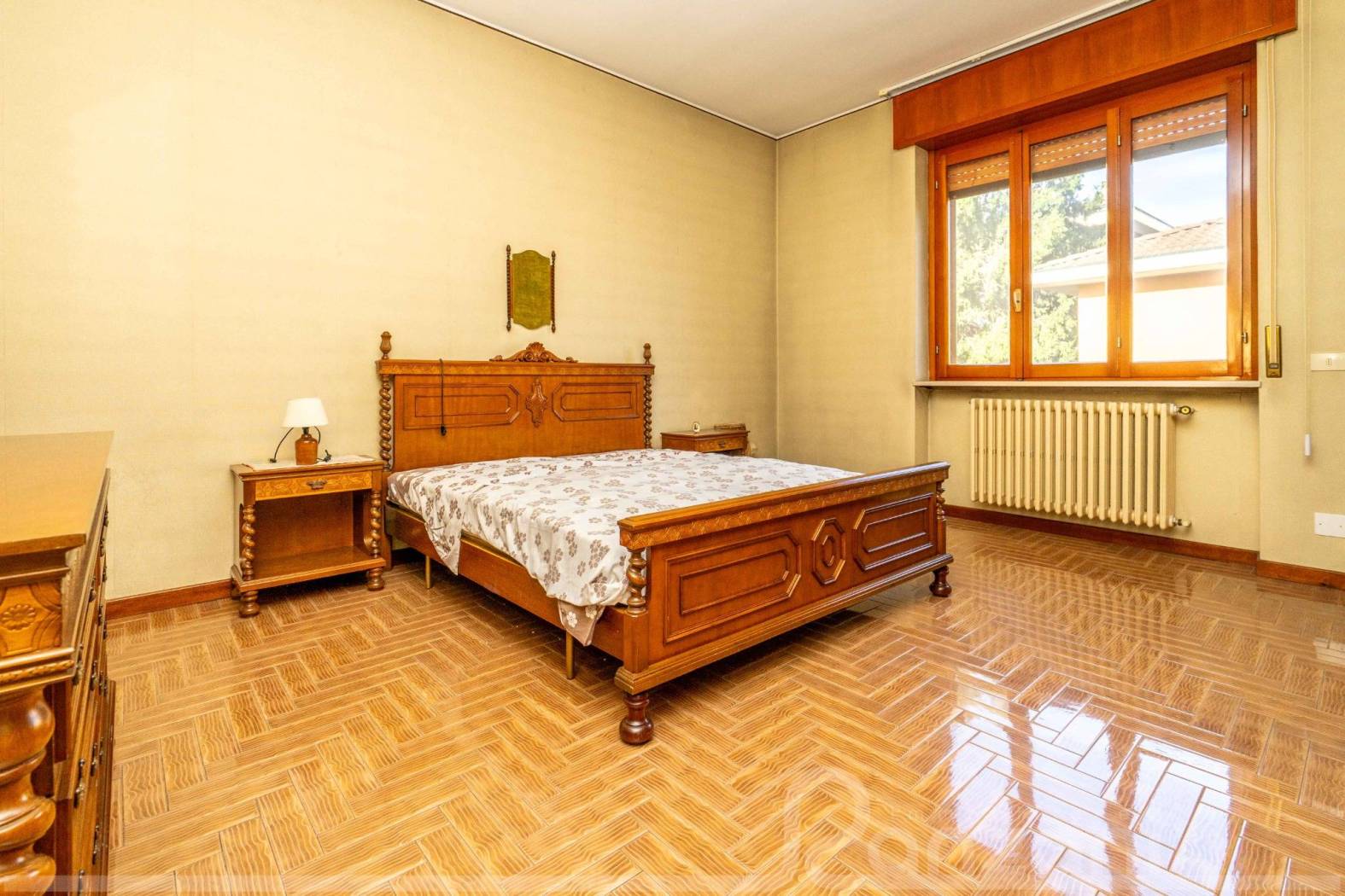 ingresso, ampio salone con balcone, sala da pranzo con camino, cucina abitabile, due spaziosissime camere matrimoniali, bagno finestrato, ripostiglio. Tramite ristrutturazione, viste le notevoli dimensioni interne, è possibile realizzare facilmente una terza camera da letto matrimoniale e un secondo bagno al piano.