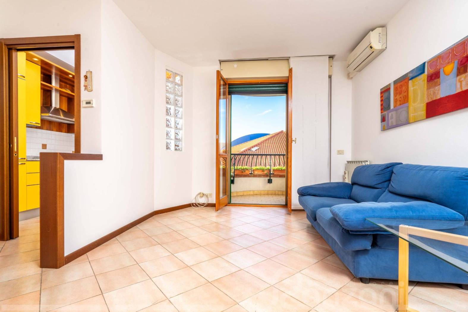 CARATTERISTICHE: L'appartamento è composto da spazioso soggiorno con terrazzino loggiato semicircolare, pratica cucina abitabile, ampia camera matrimoniale pavimentata in parquet e bagno finestrato con doccia.