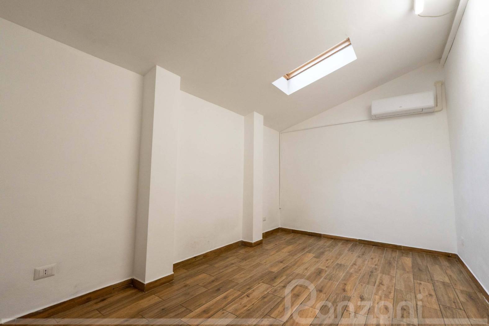 Formalmente un grande open space moderno e trendy, dalle grandi finestrature di derivazione commerciale, all'atto pratico può essere utilizzato a guisa di "trilocale" (con rapida modifica, anche di "quadrilocale"), grazie agli ampi vani deposito separati e finestrati ed ai doppi servizi. L'immobile verrà venduto con cortile di proprietà esclusiva.
