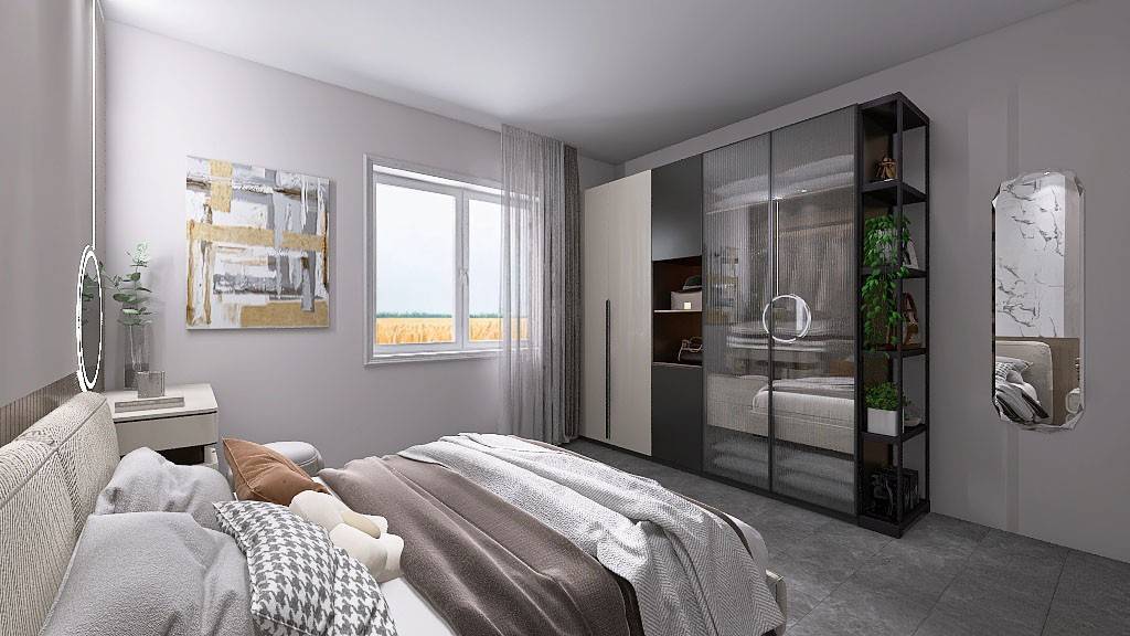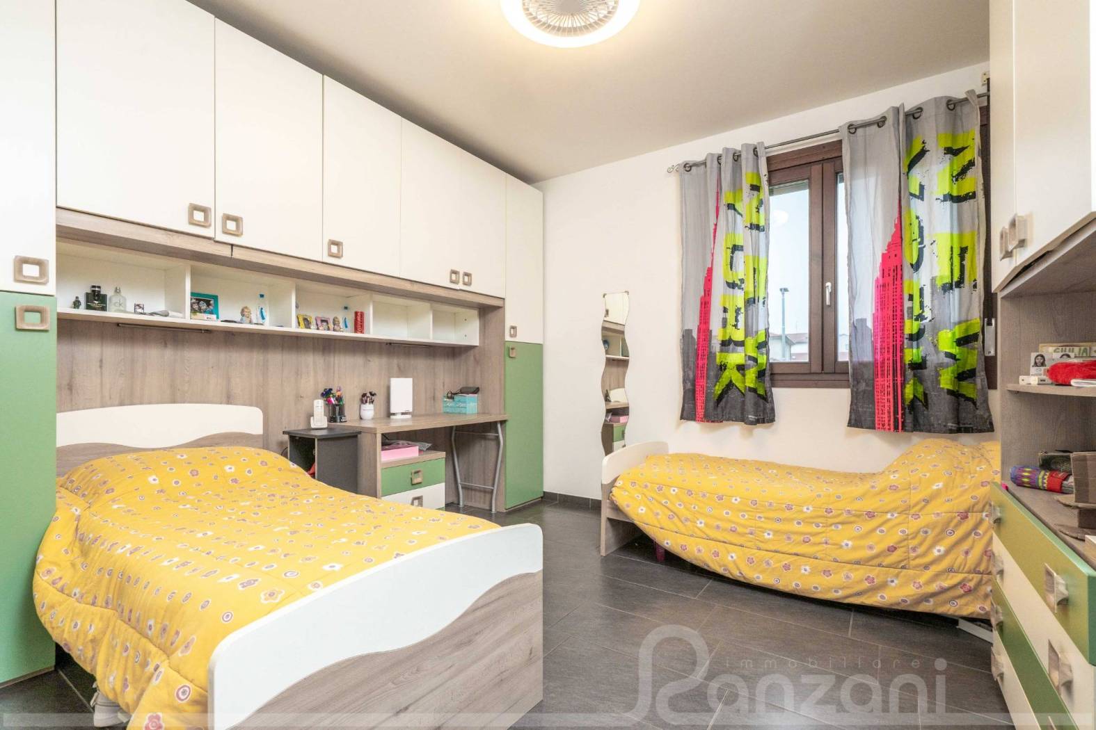 Si evidenzia che le ultime 4 foto dell'annuncio sono dei render per proporre soluzioni di arredamento (prodotti sulle stanze in scala) in cui la camera matrimoniale viene ricollocata nella sua posizione di origine (attualmente adibita a camera dei ragazzi per esigenze familiari) mentre l'ulteriore stanza viene adibita a camera singola (attualmente arredata con letto matrimoniale e armadio a ponte).