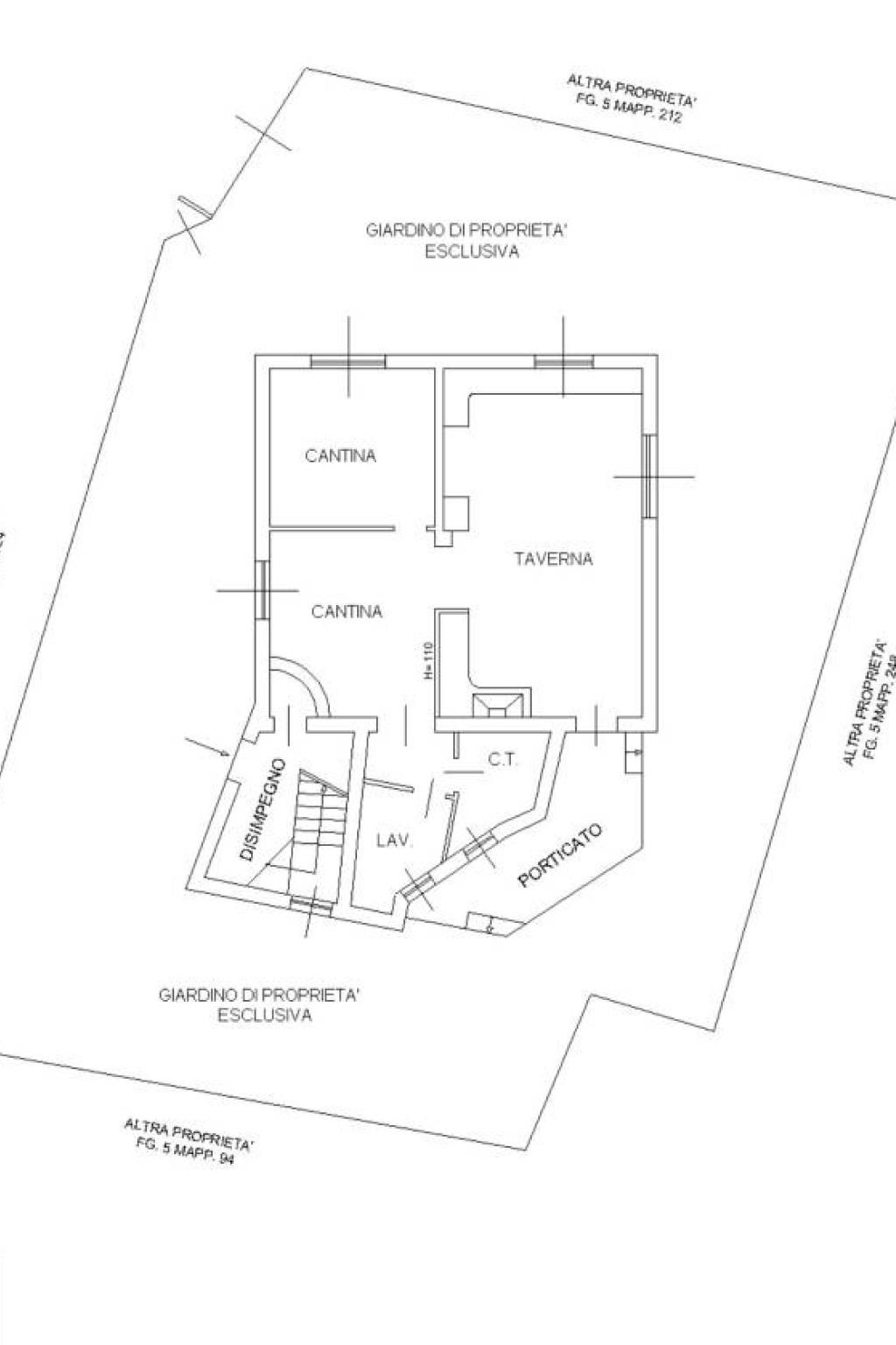 PIANO TERRENO: spaziosissima taverna di oltre 60 metri quadri dotata di camino e angolo bar, ulteriore stanza deposito accessoria, lavanderia e locale tecnico. Ampi spazi esterni con giardino di oltre 300 metri quadri, spazioso box autorimessa e porticato coperto.